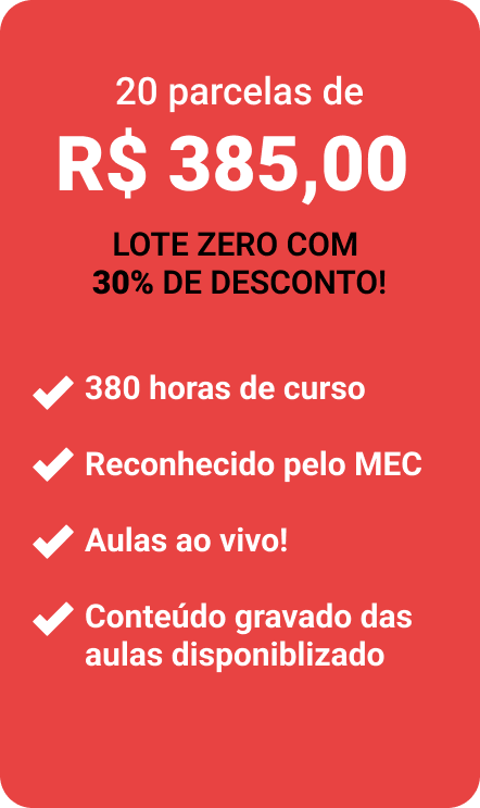 Após os encontros ao vivo, as gravações das aulas estarão disponíveis por até 30 dias para que você possa assisti-las novamente quando desejar.